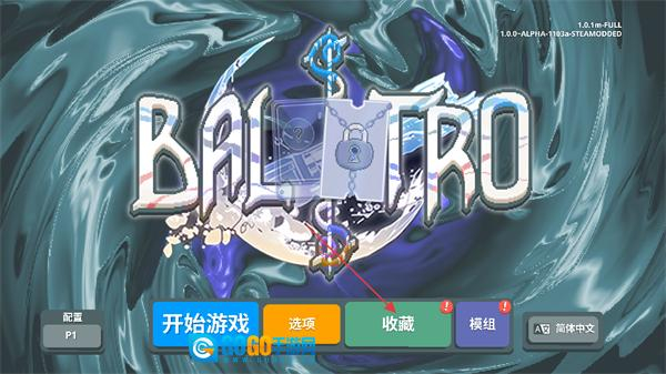 进入小丑牌神秘生物模组的主界面后,点击“开始游戏”即可启动游戏,也可以通过“选项”“收藏”执行相应的功能操作。