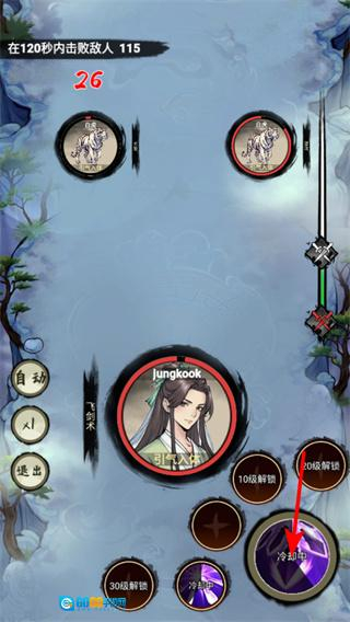 4、战斗过程中,点击界面中的技能按钮如凌剑术,这是释放角色技能的重要操作,合理使用技能能快速击败敌人,完成关卡的击杀目标。