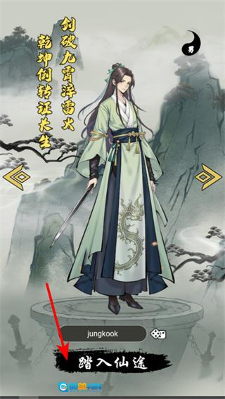 1、在角色选择界面,点击踏入仙途按钮,这是进入游戏世界的关键操作,点击后即可开启修仙题材的探索与战斗流程。