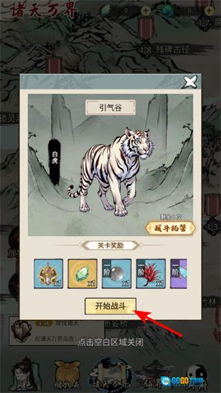 3、当关卡挑战界面弹出后,点击开始战斗按钮,这是开启对战的核心操作,点击后角色会进入与该区域怪物的战斗场景,推进关卡进度。