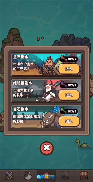 4、点击下方中间的按钮可以挑战不同的副本,每个副本里可以获得的奖励是不同的。