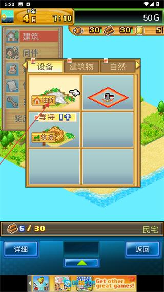3、这是建筑界面的设备分类页面,涵盖住所、牧场等设施选项。在这个界面的设备分类下,能挑选对应的设施开展建设,从而推动岛屿的发展进程。