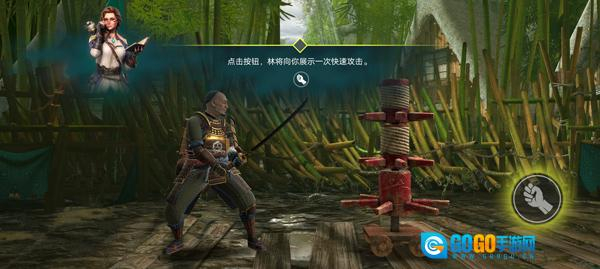 4、进入后有一个新手教程,点击按钮,即可快速攻击;