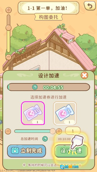 可使用加速券来缩短设计过程中的时间,提高效率。