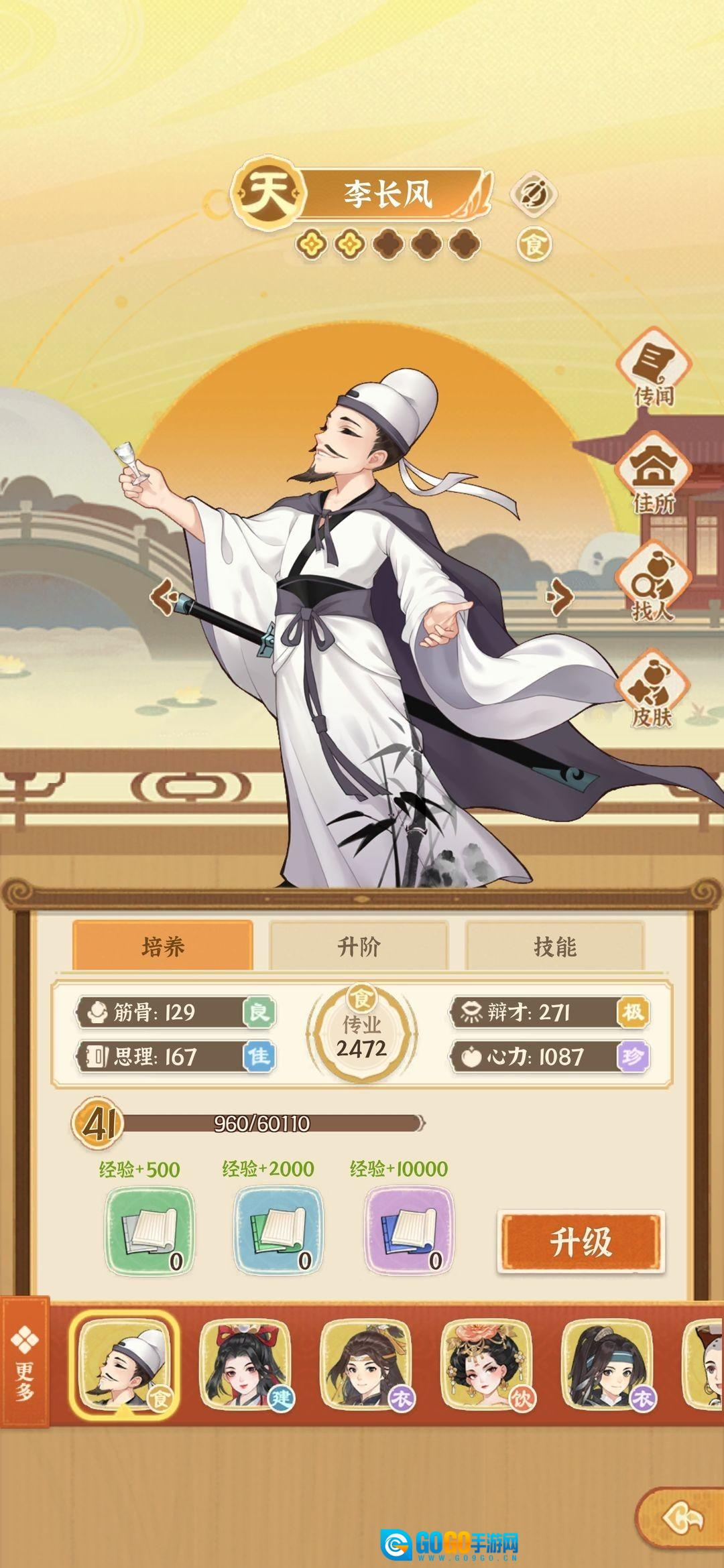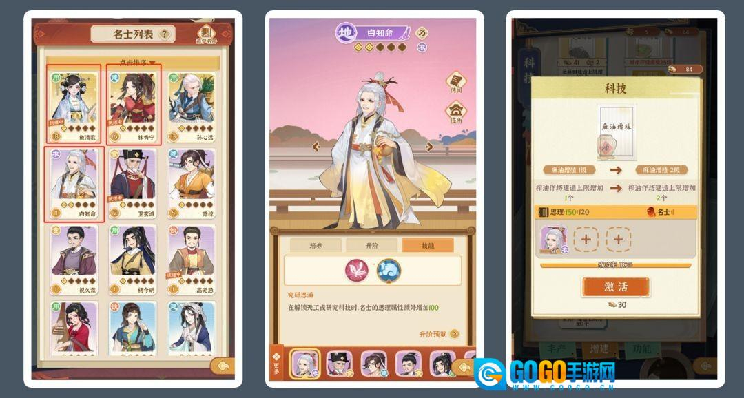 开局阶段搭配6元档位的鱼清歌(带家具收益加成)和林秀宁(木材林场产出加成)会让前期体验更顺畅,优先把核心的五个角色均衡培养,其中白知命建议重点提升!