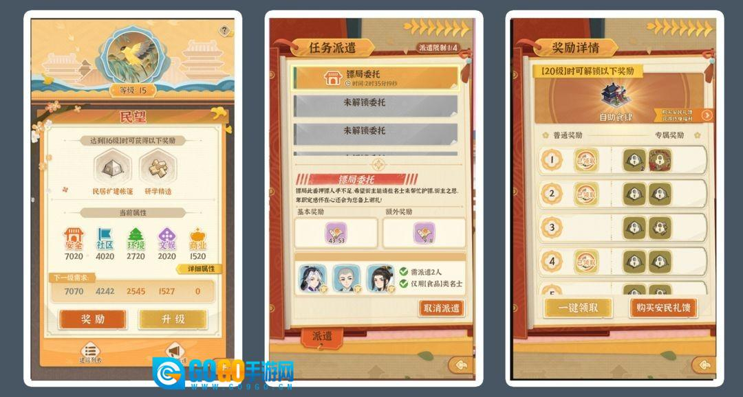 当安全、社区、环境、文娱、商业这五个维度的指标达到要求后,便能提升民望等级并获取“升级材料”。这些指标可通过名士助力、建造装饰类建筑、升级民望相关建筑等途径来提升。