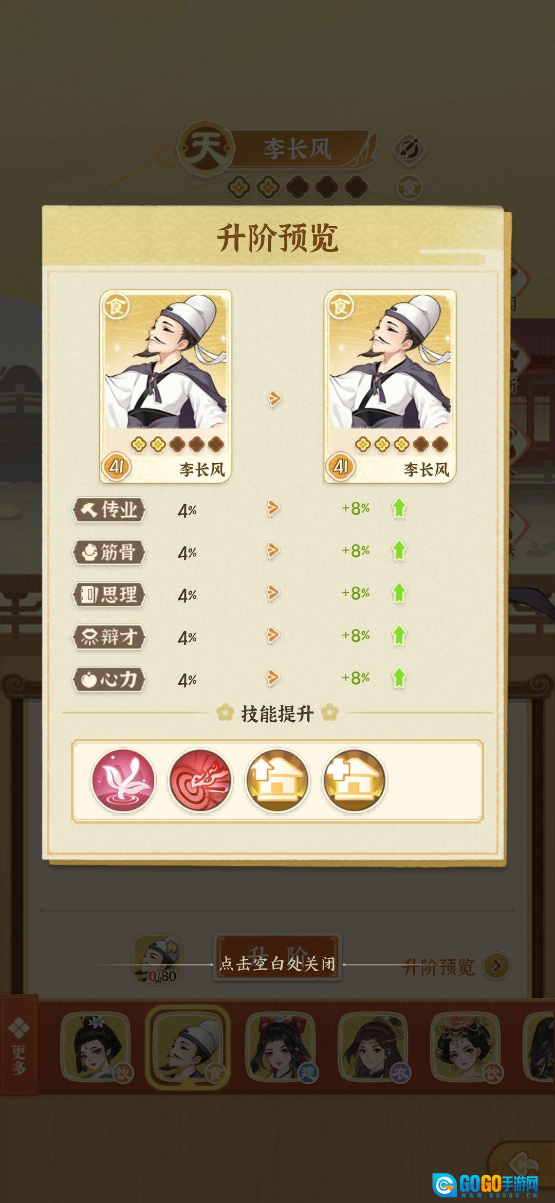特殊技能方面,基本上每位名士的都有所不同,仅有少部分是相同的(配图展示的是李长风的特殊技能)
