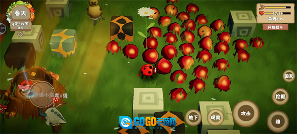 泥土的实际作用较为有限,建议优先使用玩偶替代泥土功能。挖掘时应尽量选择地图边缘区域,在同一地点连续挖掘多次直至出现物品。若未获得所需资源,可向左或右稍作移动,直到挖掘提示消失再继续。玩偶可放置在家园周边,能够吸引入侵者的攻击。