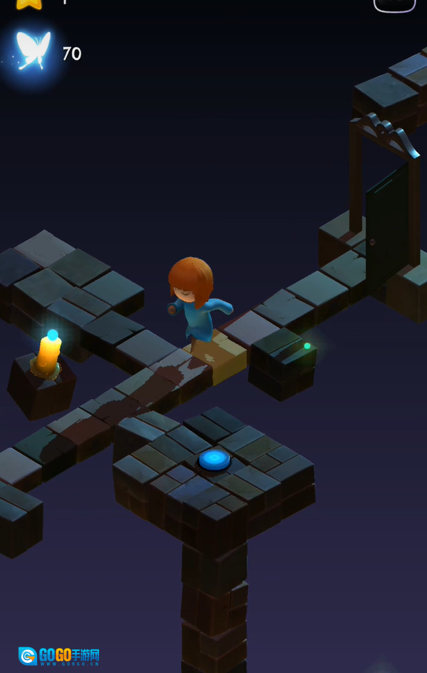 5、角色会再次从第一个门出来,此时灯还没升起来,先向上走绕一圈,等灯升上来后这次不踩,直接走向门口。