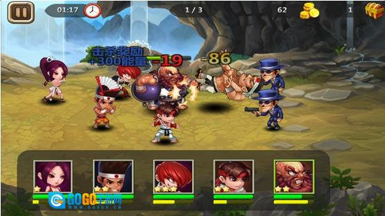 4、阵容搭配:比较推荐“草薙京+八神庵+雅典娜”的组合,这个组合能同时具备输出、控制和治疗能力,在多数副本和对战场景中都能适用。