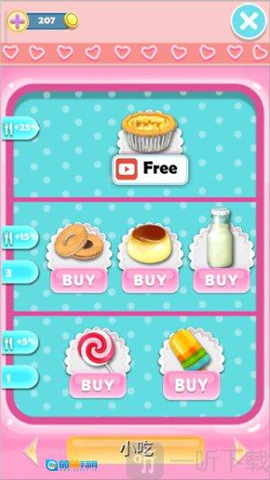 点击加号按钮,挑选女朋友爱吃的食物,把美食拖到她面前,和她增进感情。