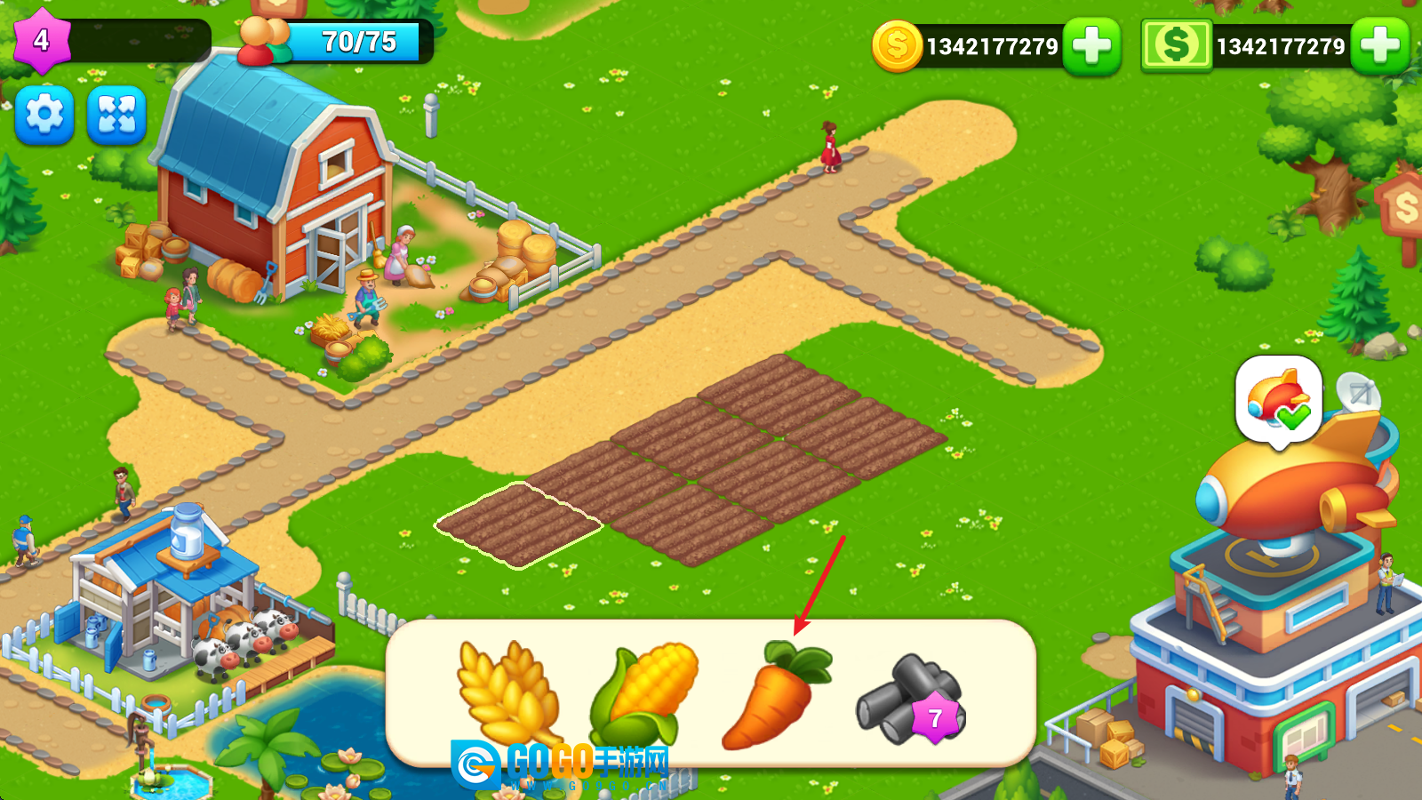 进入游戏后,先从农田种植着手,点击空着的土地就能种下各类作物。