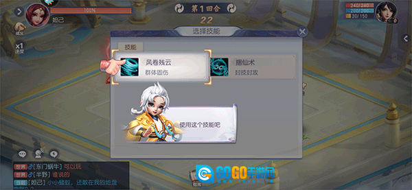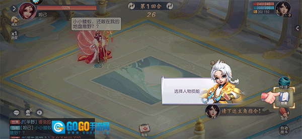 4、当触发战斗玩法后,进入战斗模式的第一步是选择人物技能。