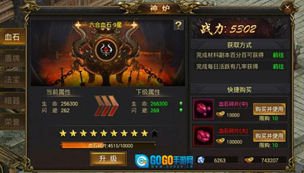 可大幅提升生命上限和闪避,血石碎片可通过材料副本、击杀BOSS等途径获得。