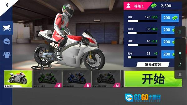 进入车库后,里面停放着各式各样的摩托车,你可以挑选一辆性能较为出色的,同时还能更换赛车手的服装和头盔。