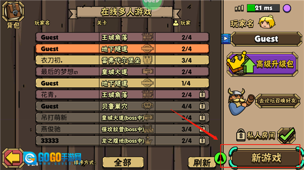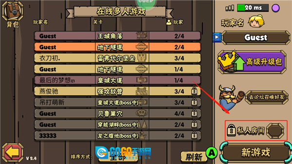 6、最后朋友就可以输入这个密码进入到房间中,现在只需要点击“新游戏”,即可就可以完成联机一起闯关。