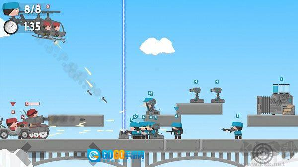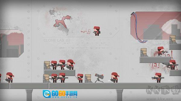 博士能够复制出克隆自己的小兵,这些小兵可由玩家操控——左侧负责控制小兵的移动方向,右侧则用来操作射击与向上跳跃。