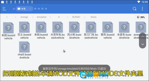 2、完成后,打开手机的文件管理应用,进入Android目录找到dats文件夹。举个例子,如果mod文件在QQ群文件里,就依次点击tencent、QQfile,找到对应的mod文件后长按它,再把它移动到BUSSID文件夹中。