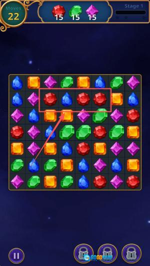 2、精准凑集消除:仔细观察宝石的分布布局,确定同类宝石所在的位置,借助滑动操作来调整宝石位置,让同类宝石形成三颗或更多数量的组合,以此达成消除目标。