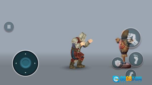 3、借助训练模式能够熟悉基础动作,具体如下:界面左侧设有虚拟摇杆,可用于操控角色的移动方向;右侧配备了拳、腿对应的攻击按钮,除此之外,还包含防御和跳跃按键。