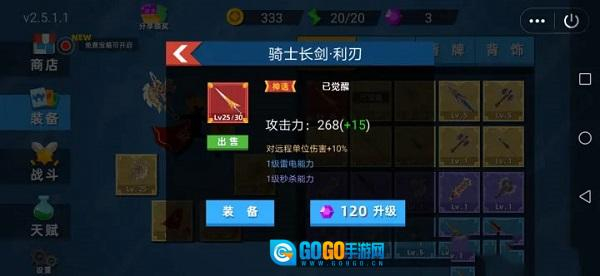 3、长剑的攻击力是很高的,在第5关时容易刷到。