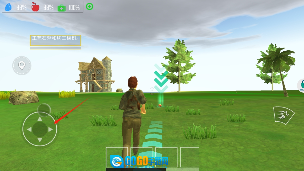 在游戏里,要熟练操控左侧的虚拟摇杆,以此来控制角色在荒岛场景中移动,进而探寻各类资源以及安全的区域。