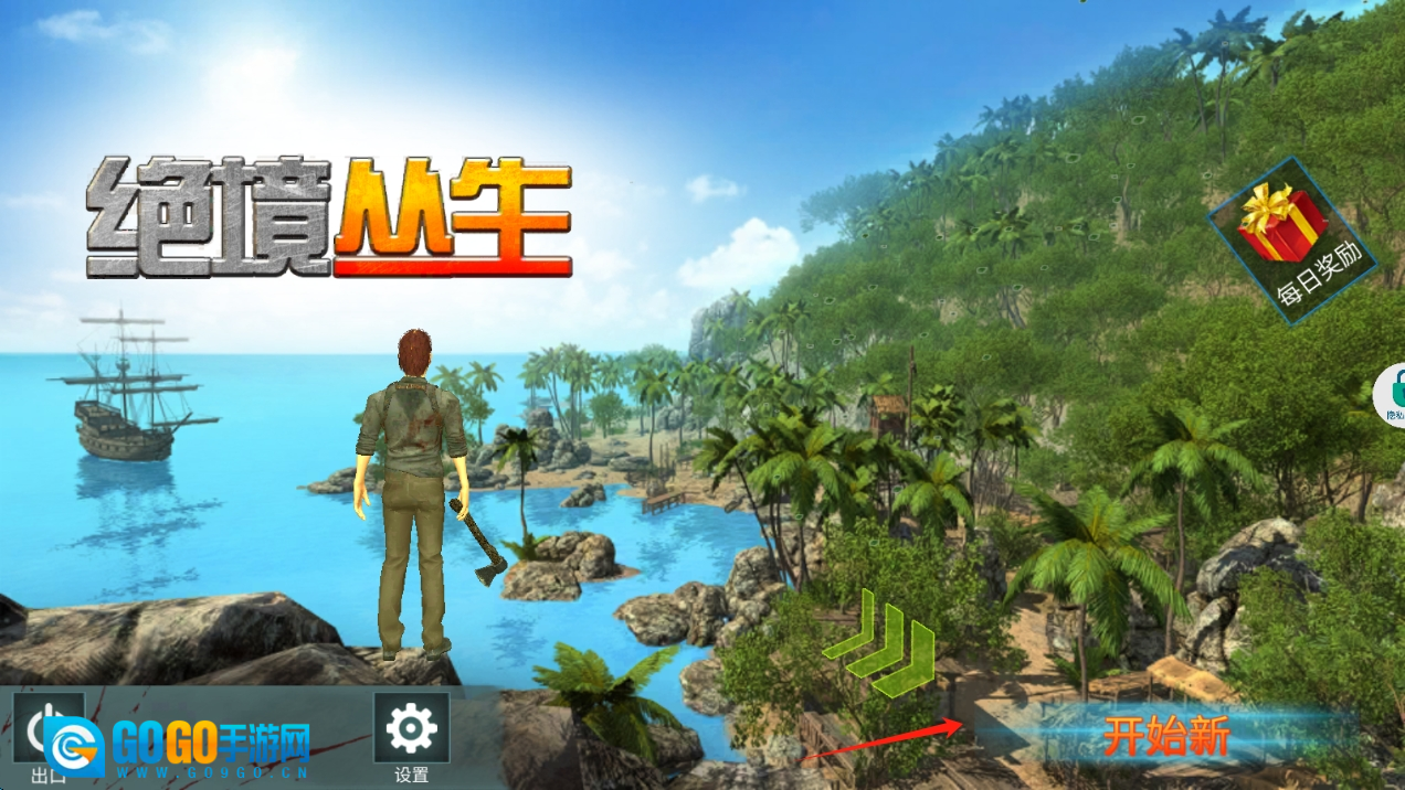 在绝境丛生的启动界面,点击“开始新”选项,即可开启荒岛生存挑战,之后点击“开始游戏”按钮。
