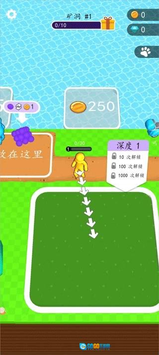 你可以通过获取一定数量的金币来招募和升级矿工,让他们帮你干活。只要矿还在,就能持续不断地得到金币,这就是游戏的核心玩法。