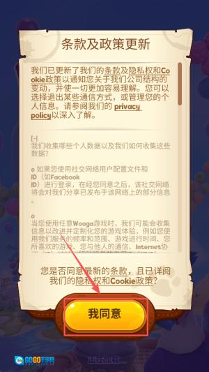 1、查看更新提示:启动游戏后若弹出条款更新的弹窗,直接点击“我同意”按钮即可继续加载流程。