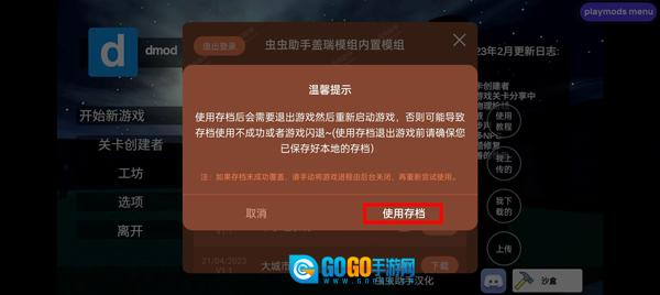 3、完毕之后,直接点击进行使用存档,然后回到游戏大厅;