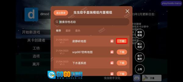 1、进入到这款盖瑞模组游戏之后,在左上角找到虫虫助手的标志,点击进入;