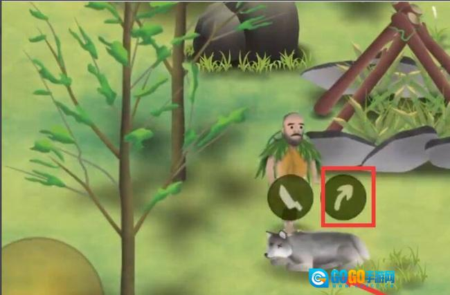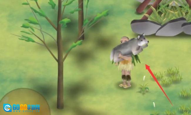 1、打昏野狼,游戏中,我们攻击狼,将其打昏,将狼打昏后,我们点击向上图标,将狼背到身上。