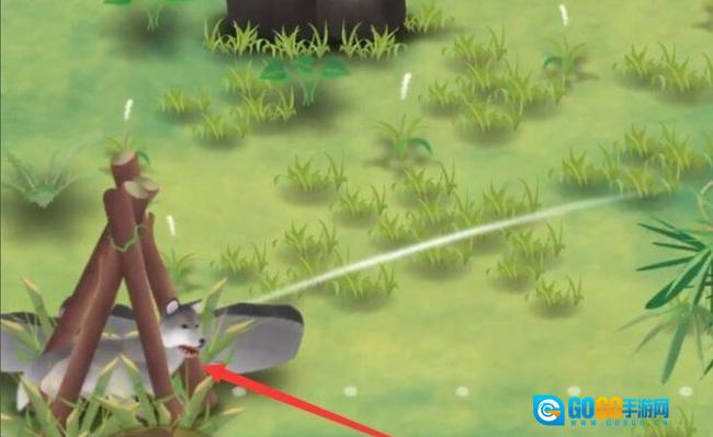 2、带回营地,将狼背到身上后,我们带着狼回到营地,回到营地后,我们点击向下图标,将狼放到营地里面。