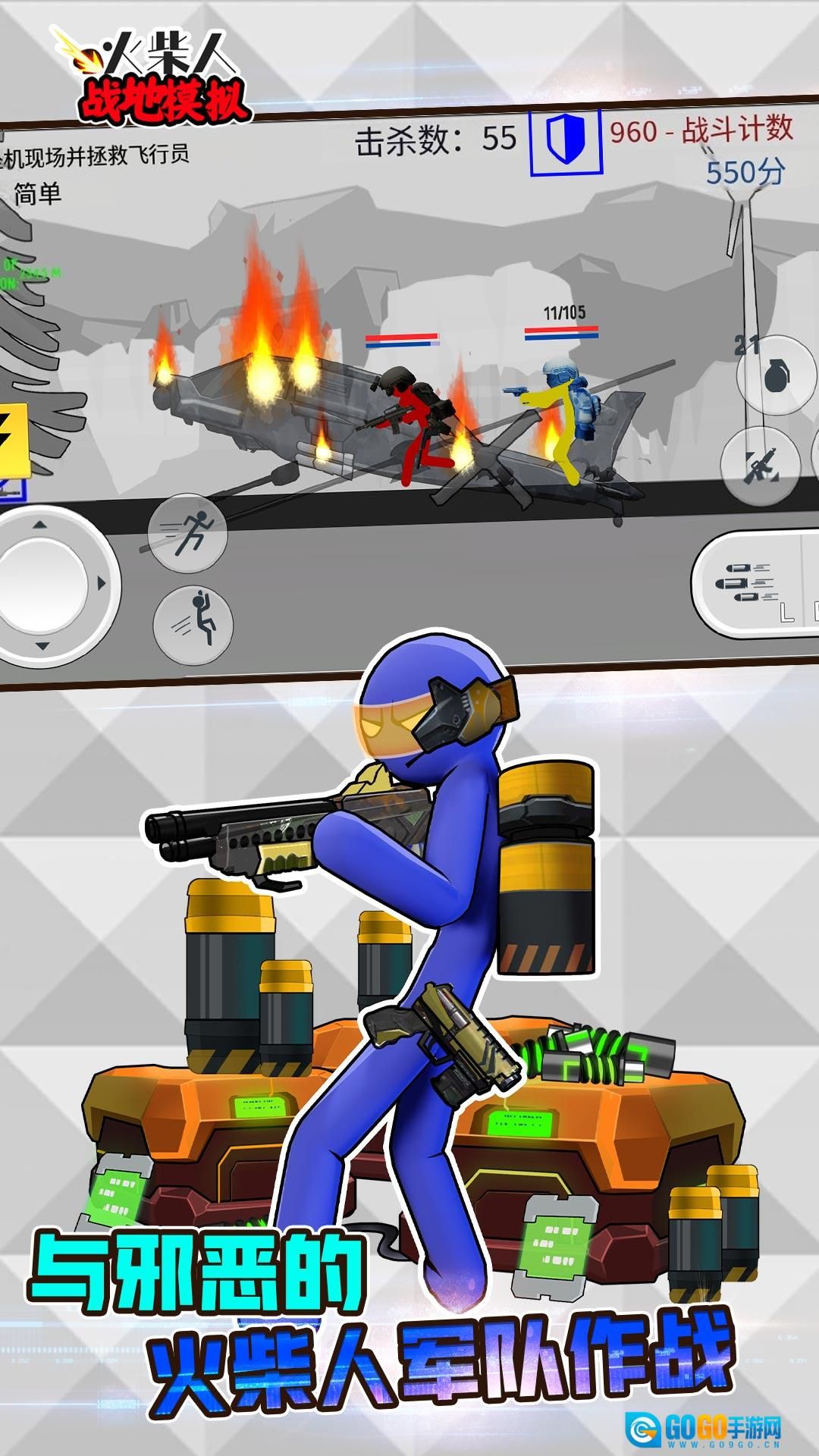 游戏里除了自由对战模式,还设计了多样的剧情关卡,玩家会化身为火柴人英雄,在各个不同的战场中穿梭。