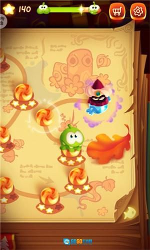 2、核心可爱小精灵是人气角色小怪兽Om Nom,它有着圆滚滚的身材、灵动的大眼睛和软萌的绿色毛发,走路时的憨态、吃到目标物品时的满足表情等细节设计,让这只Q萌感十足的小家伙极具亲和力,无论是低龄玩家还是成年用户,都能被它讨喜的形象所吸引。