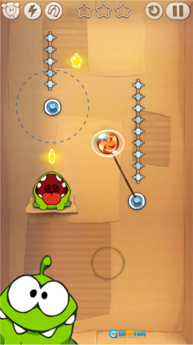 5、线圈:当糖果进入线圈内部时,会通过绳索与线圈圆心固定,不过该功能仅能使用一次——糖果进入后虚线圈随即消失,后续再进入将不再产生效果。