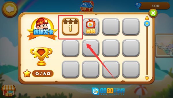 点击红色框框继续选择关卡一挑战。