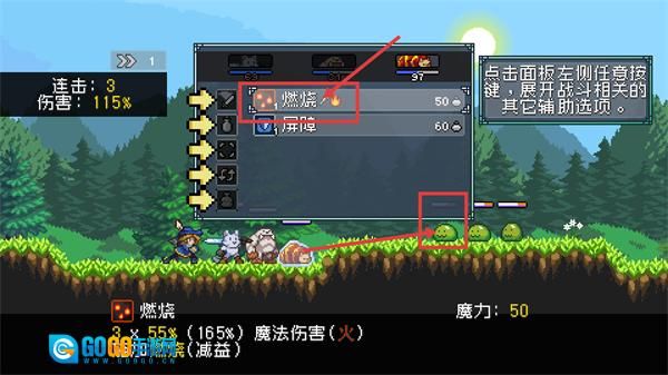 2、战斗中使用【燃烧】技能,可对敌方施加减益效果并造成魔法伤害,搭配连击机制提升输出效率。