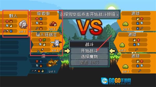 1、选择【野人】【熔岩虫】等Lv1魔物后,点击【开始战斗】按钮触发对战,利用低等级魔物积累战斗经验。
