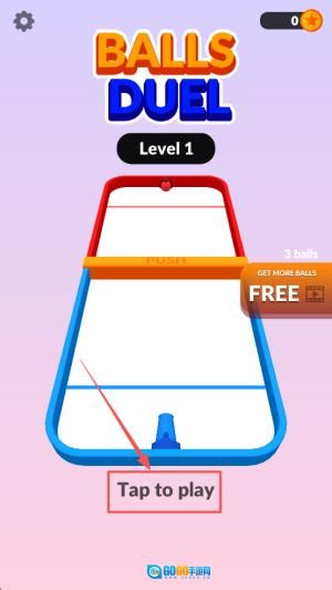 1、进入游戏:开启游戏主界面,点击“Tap to play”进入“BALLS DUEL Level 1”,系统会赠送3颗球。