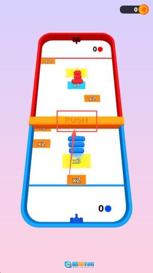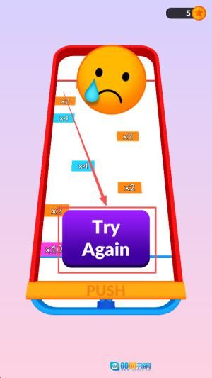 3、推动倍增:球体滚动后点击“PUSH”按钮进行加速,使球体经过x2、x3通道来增加数量。