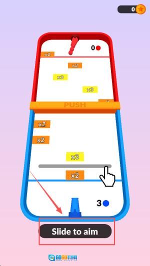 2、滑动瞄准:按住屏幕时会显示“Slide to aim”提示,调整角度对准x2、x3倍增区域后松开手指即可发射。