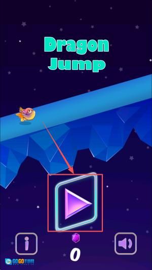 1、启动游戏:点击图标进入主界面,待看到“Dragon Jump”标题后轻触屏幕即可开始。