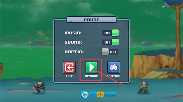 4、战斗中打开【PAUSE】界面,可调整【music】【SOUND】等设置,点击【RESUME】返回战斗。