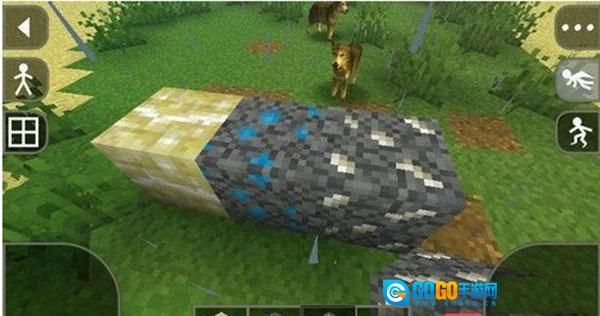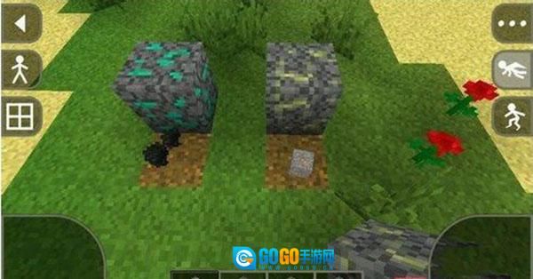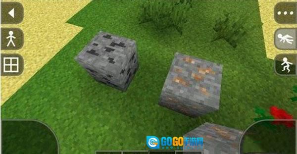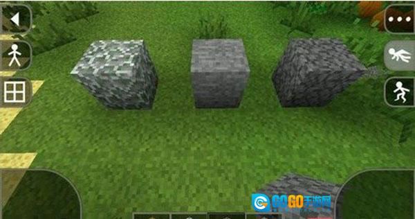 中间的是普通石头,一般位于泥土下方。它的用途包括石头染色——将石头染成不同颜色以满足建筑的美观需求,还可以用来制作石器武器,比如石镐、石斧、石刀、石耙等。