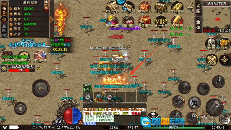 传世奇迹正版作为经典单职业传奇的正版之作,福利力度相当大——上线即赠刀刀切割、自动战斗与自动回收功能!之所以配备这些福利,是因为游戏爆率极高,若缺少自动回收,玩家恐怕刷怪没几分钟就得回城处理掉落物品;更值得一提的是,游戏中掉落的多是极品装备,打怪过程中还能免费获取会员权益。