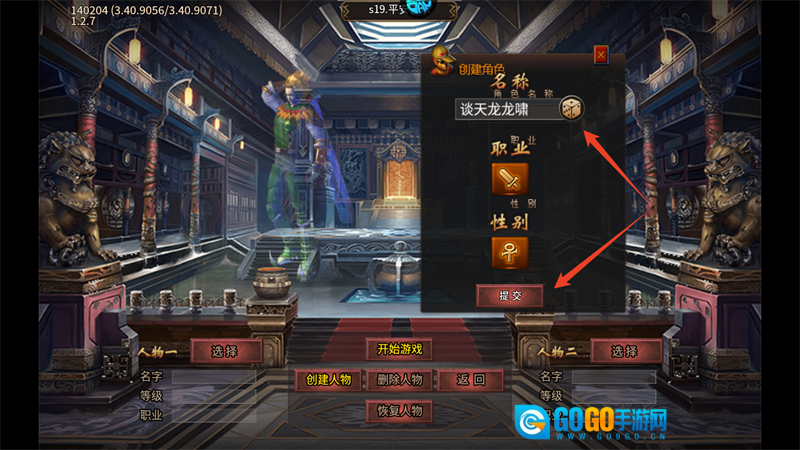 玩家进入游戏后,首先需要创建一个角色。这是单职业传奇,角色仅支持修改名字,完成后点击提交就可以了。