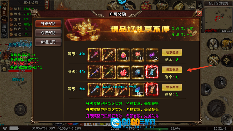 页面上方还有不少福利可以领取,只要满足相应条件就行,像在线时长达到几分钟、连续登录满几天之类的都算。
