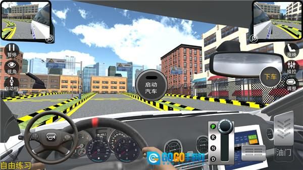 以选择手动档和自动档,并且可以选择车外视角,也可以选择车内视角,可以用第一人称的角度来体会人,车,桩之间的空间关系。