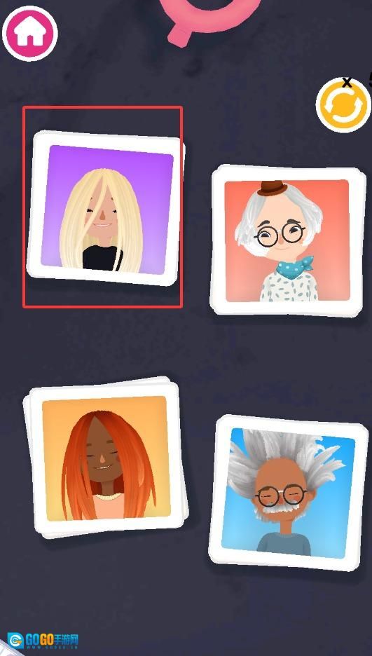 启动游戏后,点击开始按钮,即可进入美发沙龙的角色选择界面。